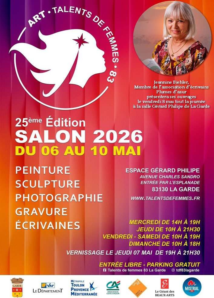 - Le 8 mai : Exposition Talents de femmes à La Garde 83 où je présenterai mes ouvrages